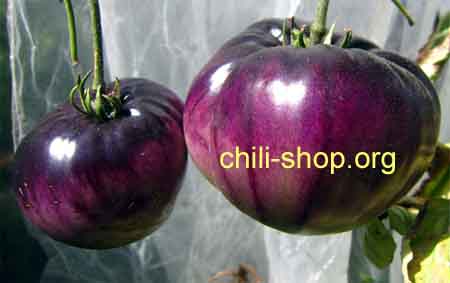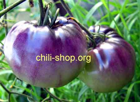 mehrfarbig abreifende bis zu 200 g schwere Fleischtomate von etwas süßlichen Geschmack