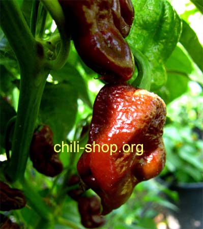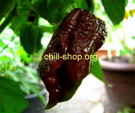 sehr große dunkelbraune leicht angeraute sehr scharfe Schoten mit gutem Aroma