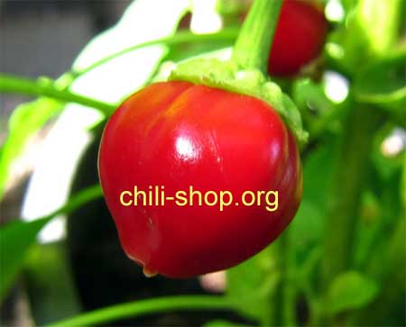 rote Chilifrüchte mit verschiedenen Schattierungen sind am ganzen Strauch verteilt - sehr hoher Ertrag