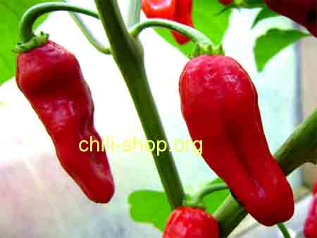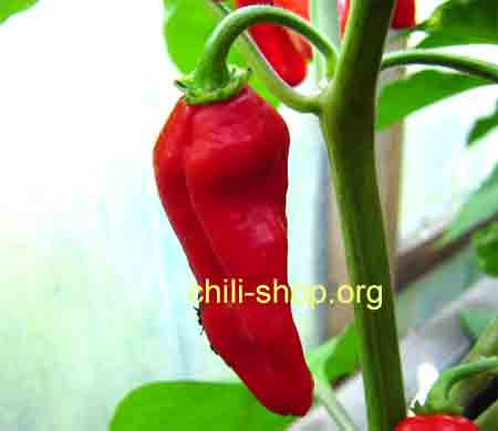 bis zu 5 cm lange dunkelrote dickwandige Schoten mit extremer Schärfe - Fruchtreife 100 Tage |