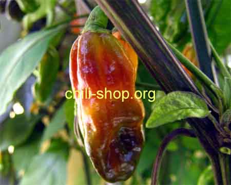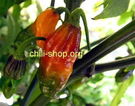 starkwüchsige Pflanze mit dunklen Blättern - aromatische Schoten reifen Orange ab