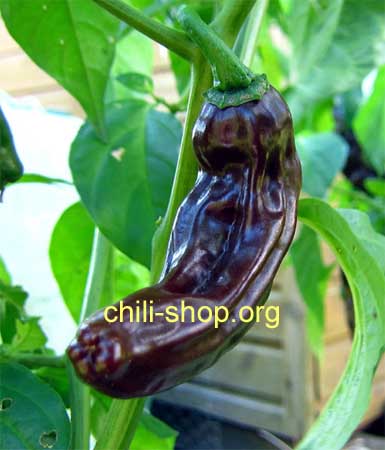 stark wachsende Pflanze mit sehr vielen dunkelbraunen Schoten