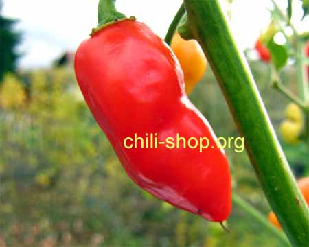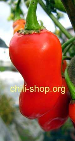 stark wachsende Pflanze mit sehr vielen dunkelroten Schoten