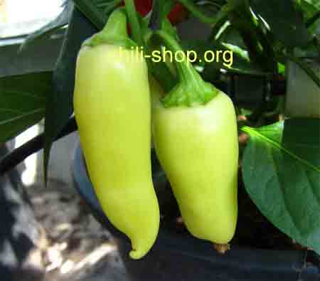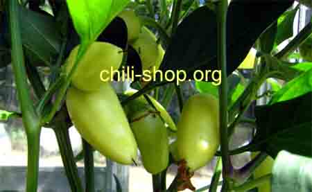 sehr produktive Pflanze - Schoten reifen von Weiss über Orange nach Dunkelrot ab