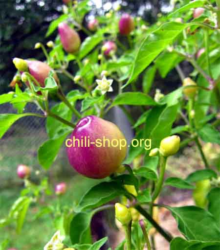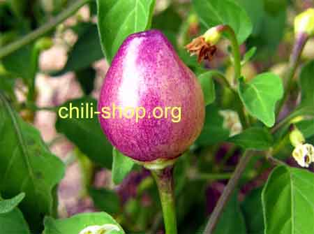 aufrecht stehende tropfenförmige Schoten - welche nach Rot von Orange nach Gelb reifen
