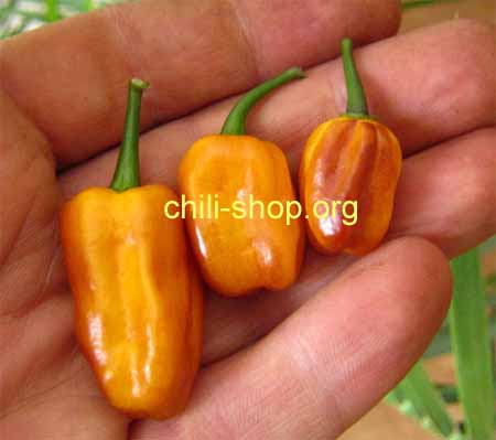 Hybride aus Pimenta de Neyde x Habanero Golden - die saftigen Schoten sind sehr aromatisch