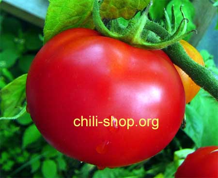 saftige dunkelrote Tomate - die Pflanze bricht unter der Last der Früchte zusammen