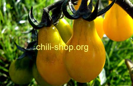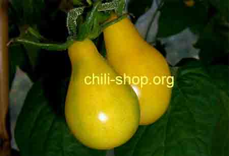 gelbe birnenförmige 10 - 20 g schwere Früchte - fest und saftig ohne Rippung